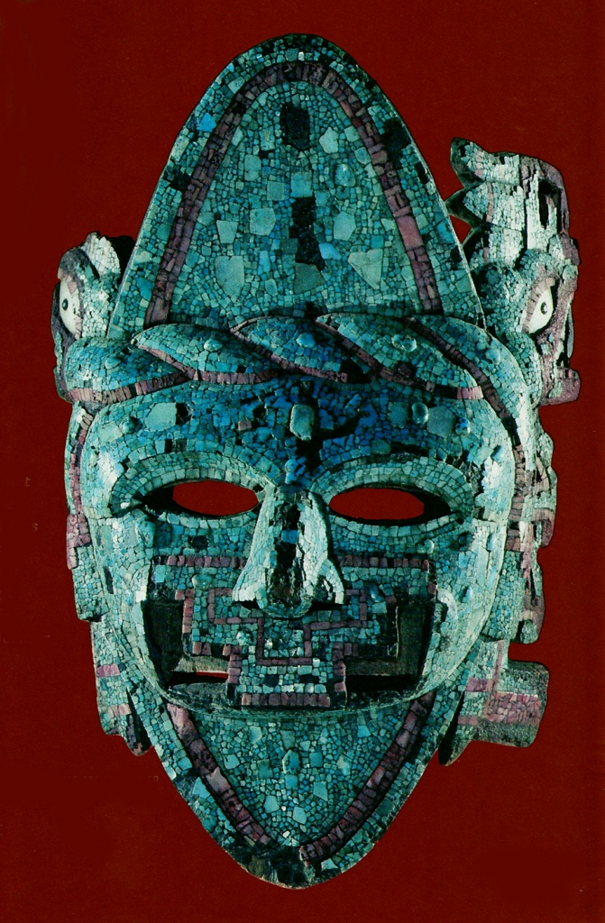 Masque de Chalchiuhtlicue – Déesse des eaux (précolombien) – Mosaïque de turquoises