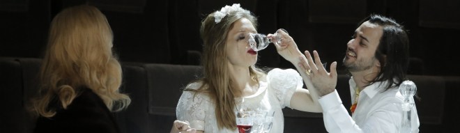 Bellezza (Beauté) prend conscience qu’elle a trop laissé Plaisir conduire sa vie. Elle peste sur son fauteuil, furieuse, contre elle-même sans doute. Alors que Temps (impassible, sûr de lui et un rien dédaigneux derrière son cigare et ses lunettes à la mode) réunit dans cette salle de cinéma les fantômes, bien jeunes, de celles qui hier encore, étaient elles-même alors « Beauté », toutes inconditionnelles accros aux conseils de Plaisir, avant que la mort ne les emporte. Disinganno (Désillusion, mais autant dire Vérité) rappelle, sourire narquois au coin des lèvres, l’évidence dévastatrice : même depuis l’ombre où l’on veut parfois le tenir caché, le temps assène ses coups, inévitablement. Le velouté du contralto de Sara Mingardo est si caressant que la tragédie qu’il annonce n’en apparaît que plus effrayante encore.