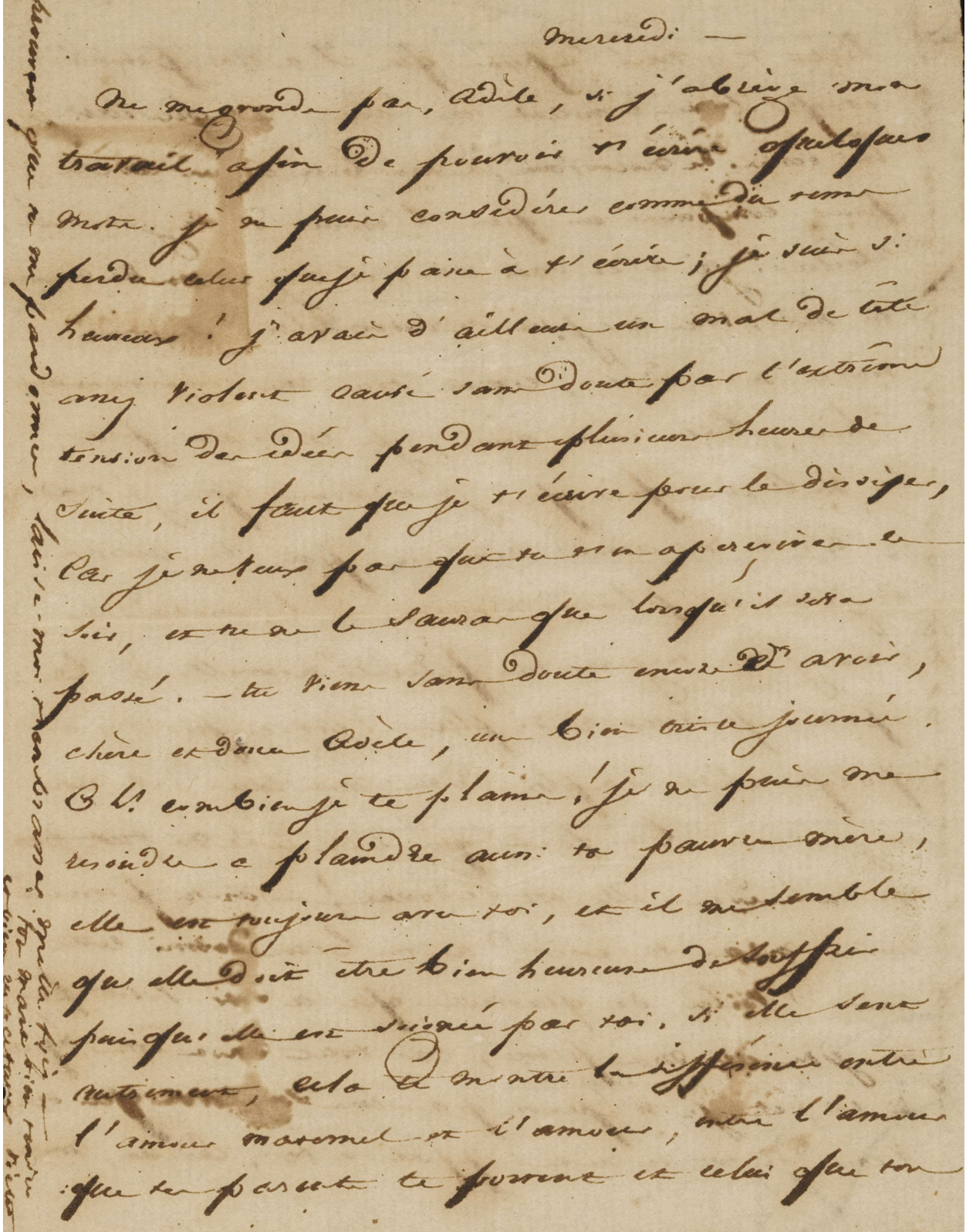 Il y a les deux également, me semble-t-il, dans ce poème. Tendresse envers Adèle qui la lui rendait bien tant par sa grande tolérance à l’égard de ses passades que par le soin tout particulier qu’elle accordait à la gestion de ses « affaires » littéraires. – L’histoire, hélas, n’a pas donné sa juste place à cette femme remarquable.