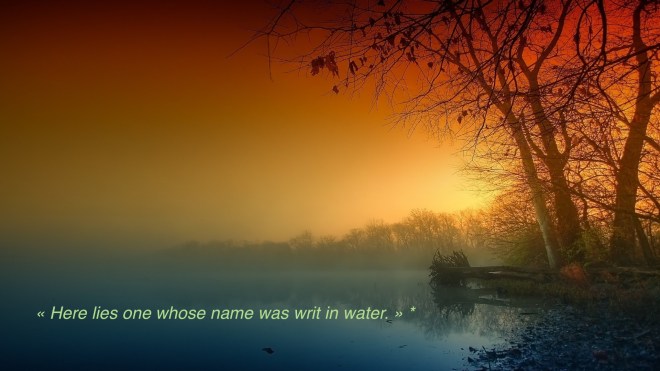 * Ici repose celui dont le nom était écrit dans l’eau. (Épitaphe gravée sur la tombe de John Keats, conformément à son désir, et telle qu’il l’a lui-même composée.)